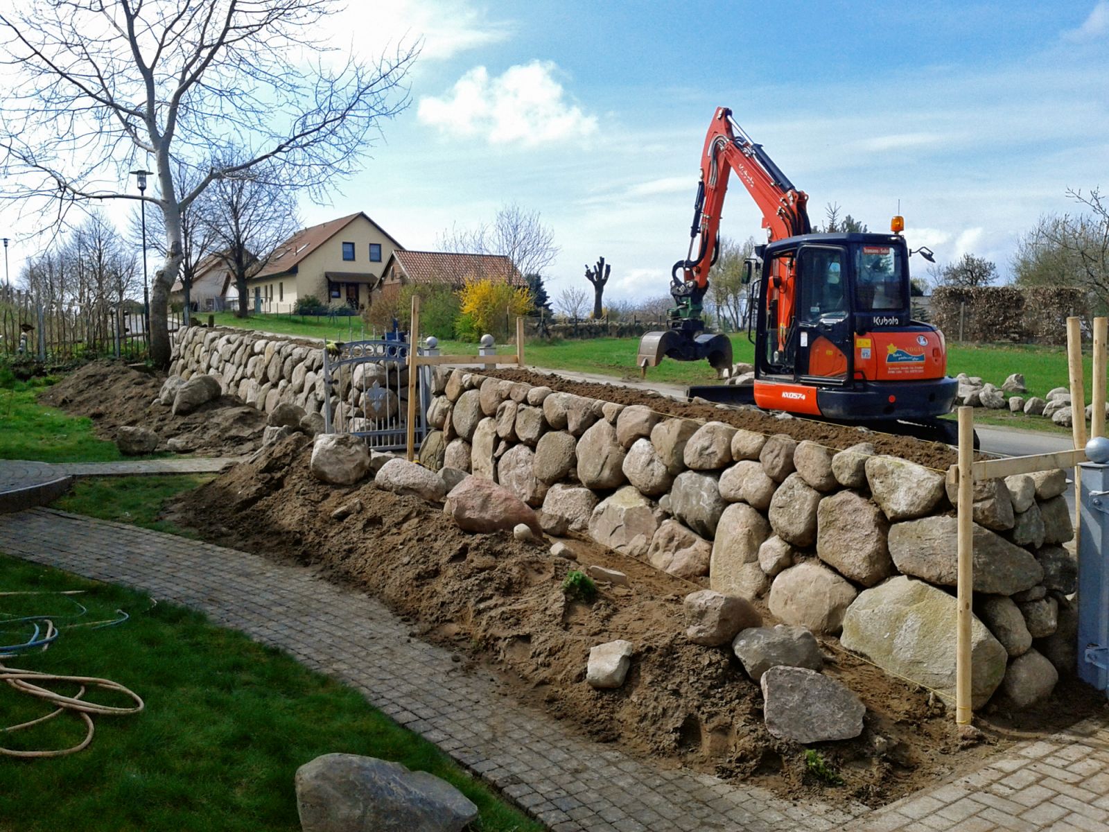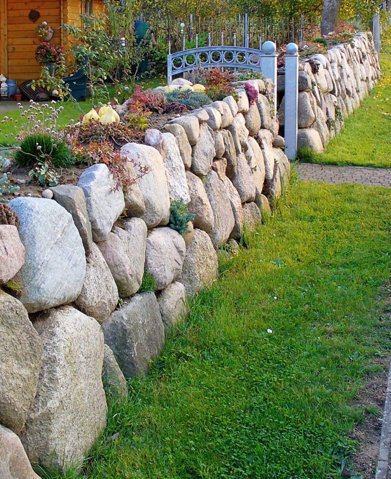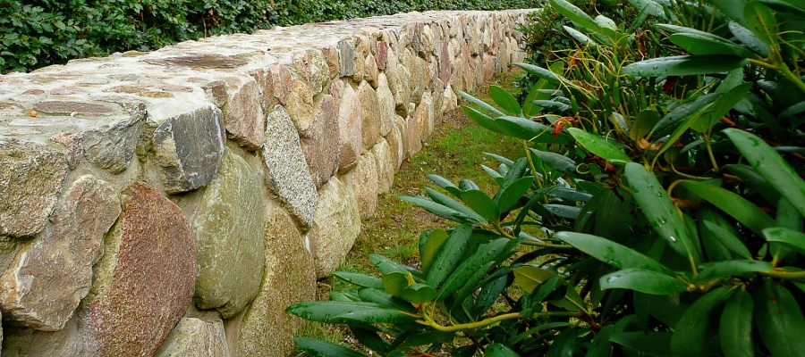 Trockensteinmauer aus Feldstein geschlagen